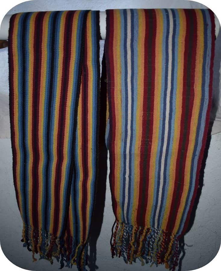 Tejido a mano con colores naturales, que representan al arcoíris realizado en lana de oveja.